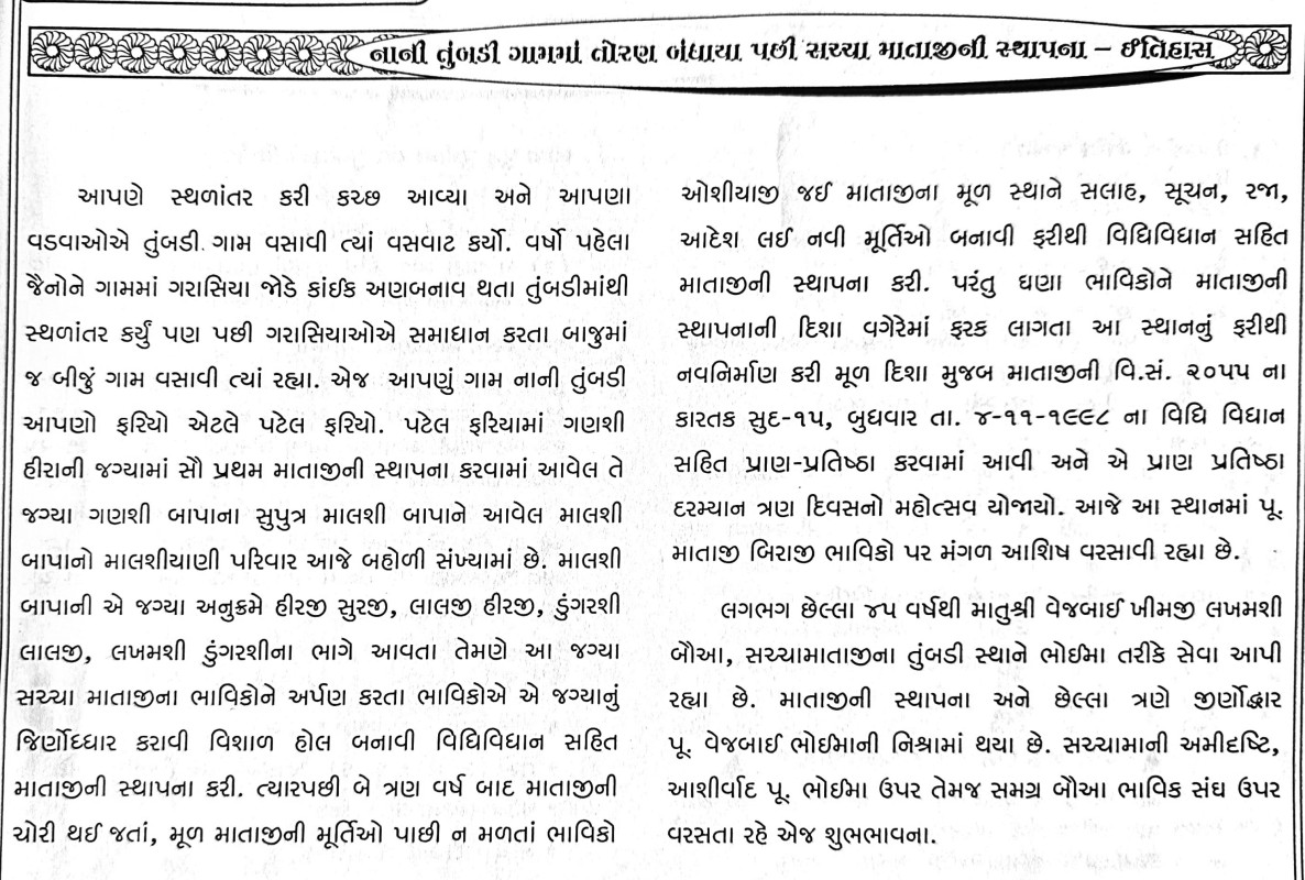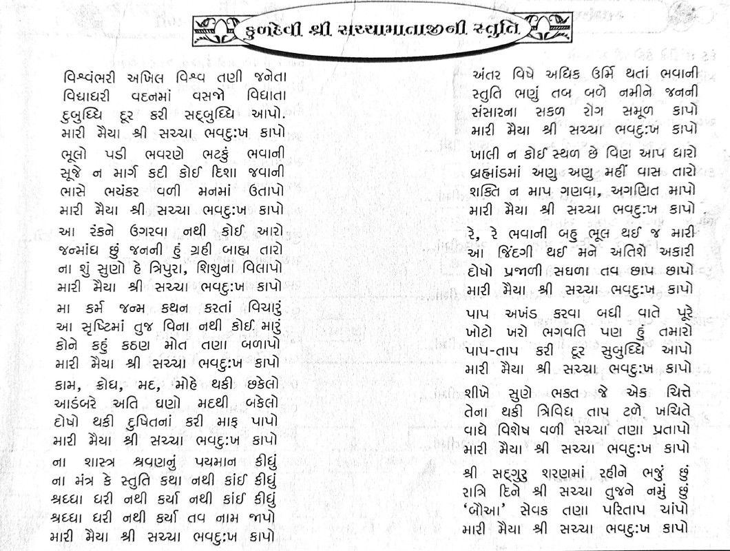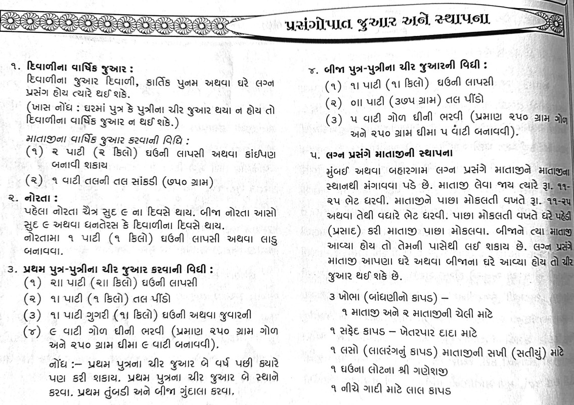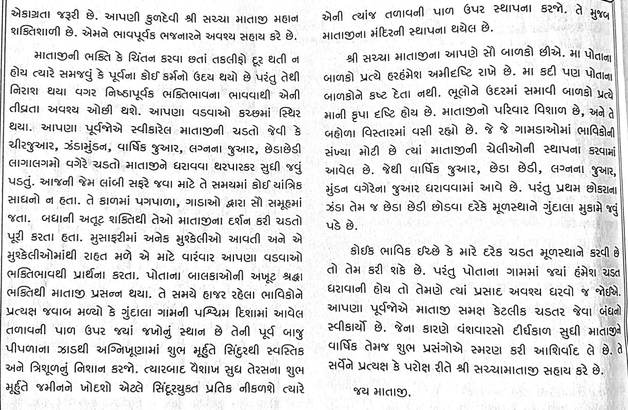 પૂજય કુળદેવી શ્રી સચ્ચા માતાને નમતા બૌઆ નુખતા ભાવિકોતી જુઆર વિધિ